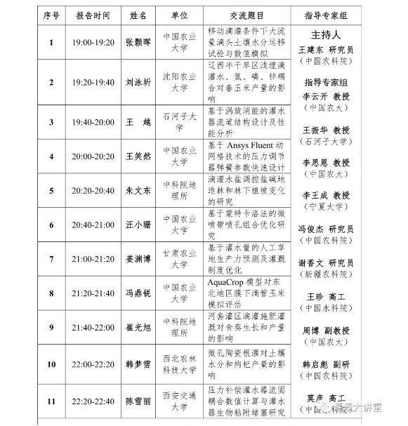 ? ? ? ? 研究生論壇專題交流會,有關(guān)微灌課題研究及成果匯報(bào)。