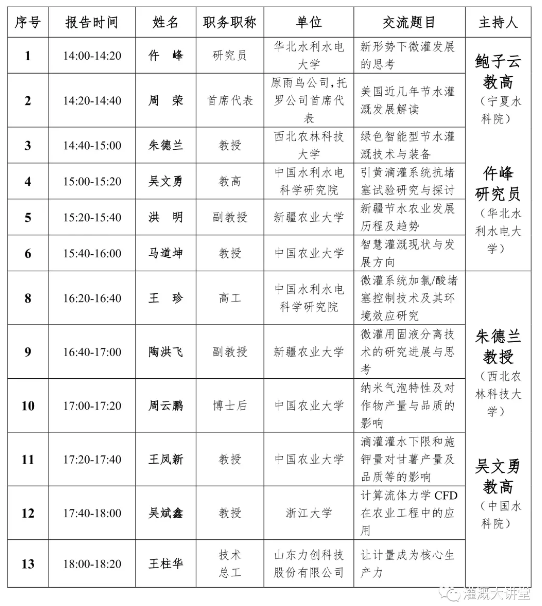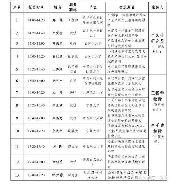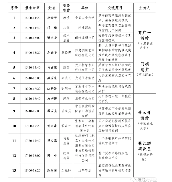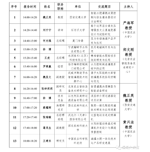 三、7月26下午分為四個(gè)分會場:節(jié)水灌溉理論、節(jié)水灌溉技術(shù)、節(jié)水灌溉裝備研發(fā)、節(jié)水灌溉模式集成與應(yīng)用。